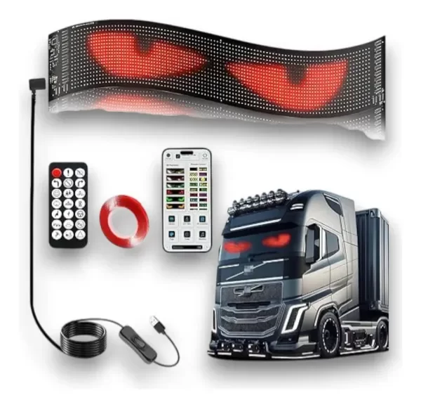 Cartel Led Flexible Diseño Ojos Camioneta Camión Micro 19.2x133cm