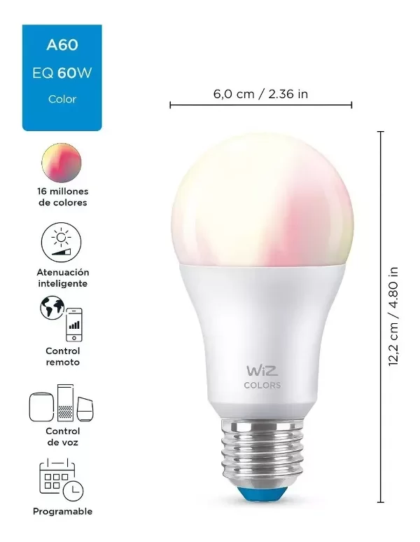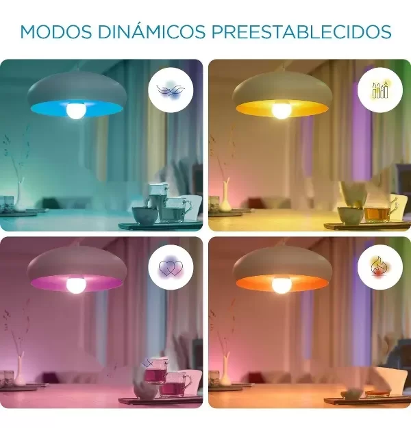 Este foco compatible con Wi-Fi puede ser una excelente opción si buscas modificar los niveles de color y brillo en los distintos momentos del día. Es posible cambiar la iluminación según el gusto del usuario y también automatizar el encendido y apagado desde aplicaciones del teléfono y desde un asistente virtual.